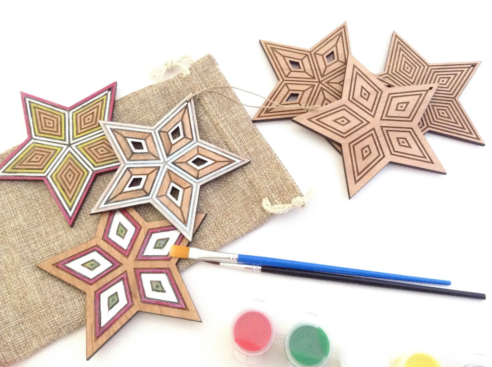 Christmas Star Ornaments Set of 3, Paint Your Own, Kids Crafts DIY Kit, Paint Wood Kit, Christmas...