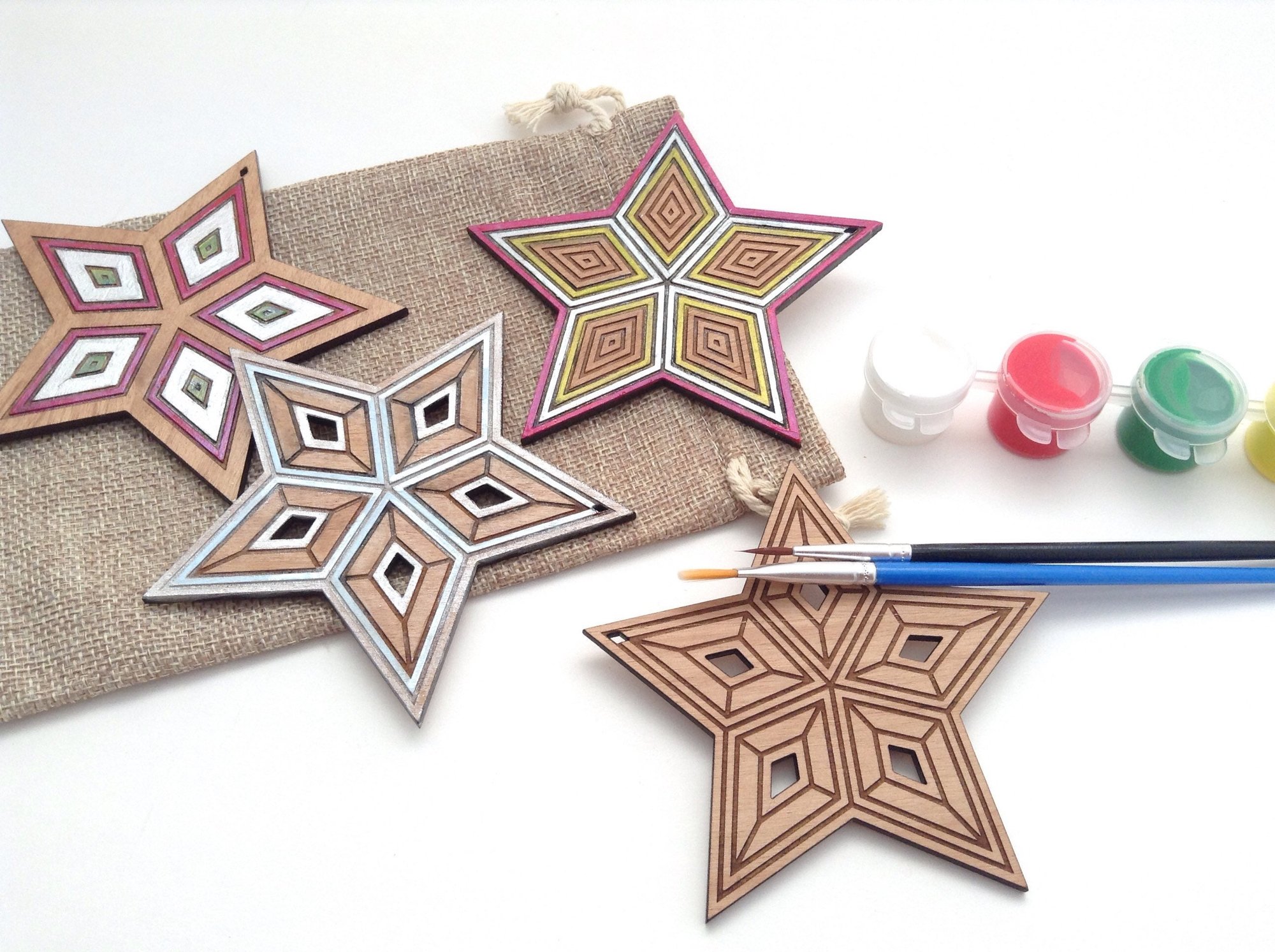 Original product name: Christmas Star Ornaments Set of 3, Paint Your Own, Kids Crafts DIY Kit, Paint Wood Kit, Christmas Gift Idea