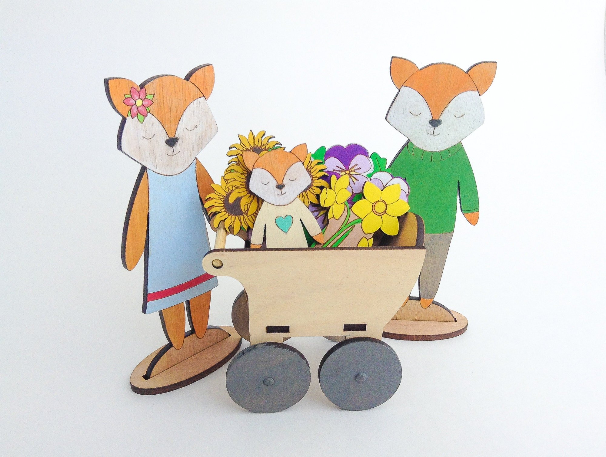 Meet the Fabulous Fox Family, They are off to the market with their little fox baby to find some fun foods and flowers.